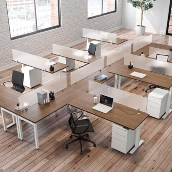 Las mamparas de pie están diseñadas para ser fáciles de instalar sin necesidad de herramientas complicadas. Se pueden mover o ajustar de manera rápida, adaptándose a cualquier cambio en la distribución del espacio.